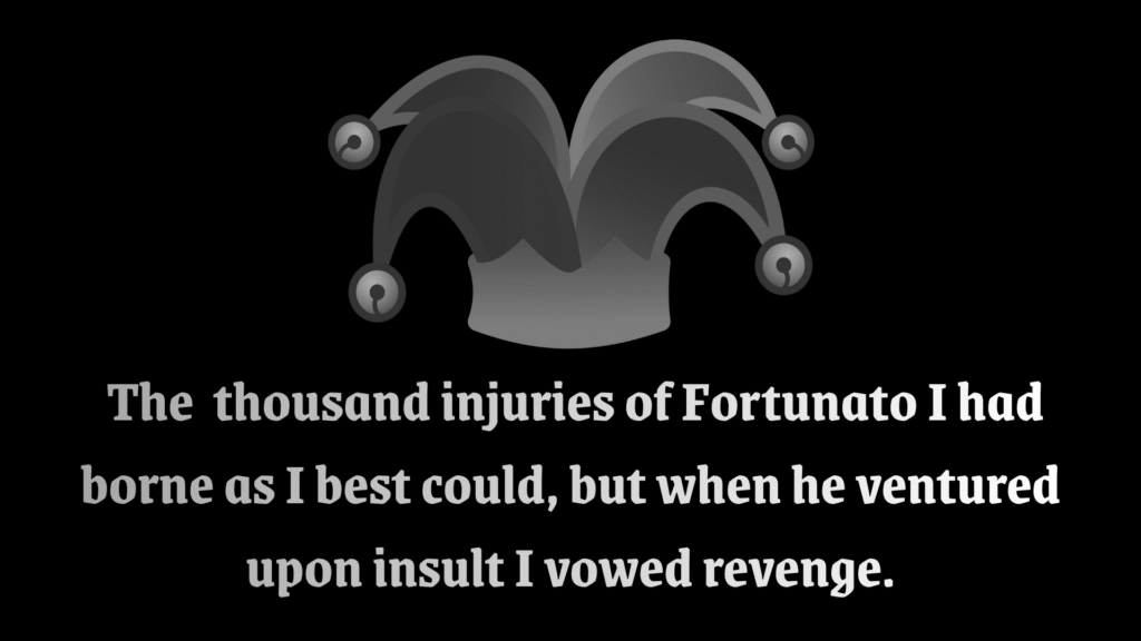 “Let us go, nevertheless. The cold is merely nothing. Amontillado! You have been imposed upon. And as for Luchresi, he cannot distinguish Sherry from Amontillado.”